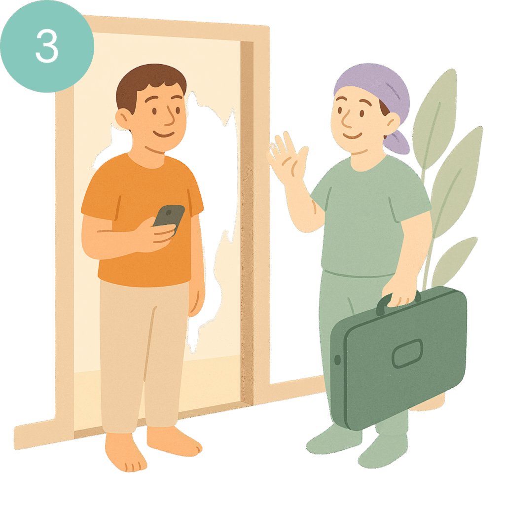 Il tuo massaggiatore porterà tutto il necessario per il trattamento di massaggio a casa tua, compreso un lettino per massaggi, musica rilassante (se desiderato) e una selezione di oli essenziali. Vogliamo che la tua esperienza sia ottimale, quindi ti consigliamo di preparare uno spazio sufficiente per posizionare il lettino in una stanza privata e calda e di avere a disposizione degli asciugamani grandi e puliti per il trattamento. Ti consigliamo di fare una doccia o un bagno caldo prima del massaggio. Questo può aiutare a rilassare i muscoli prima dell’inizio del trattamento e potrebbe anche favorire il recupero muscolare dopo il massaggio.