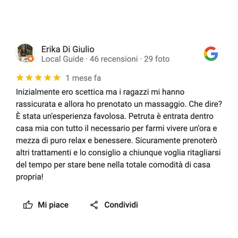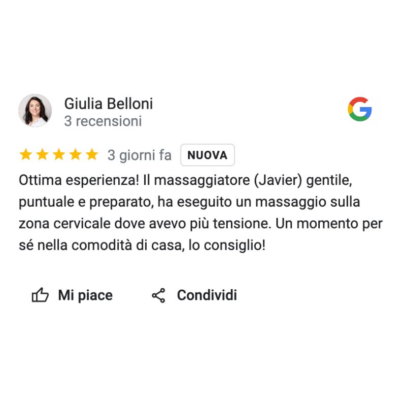 Dalle 9:00 alle 20:00, un massaggiatore esperto e certificato si prenderà cura di te, utilizzando solo prodotti di alta qualità per offrirti un trattamento personalizzato e sicuro.
